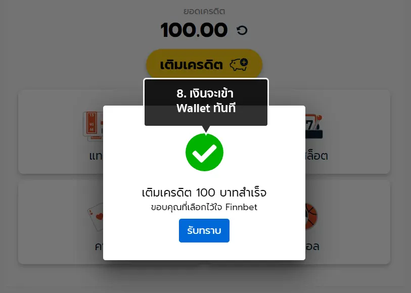 7. กด แจ้งฝากเงิน เพื่อยืนยันการฝากเงิน